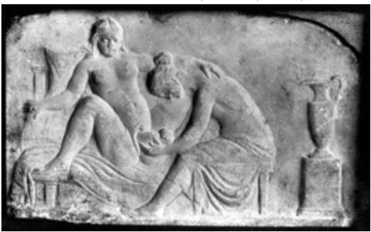 תיאור של לידה שנמצא בקברה של סקרוביונה אתיקה – מיילדת רומאית.